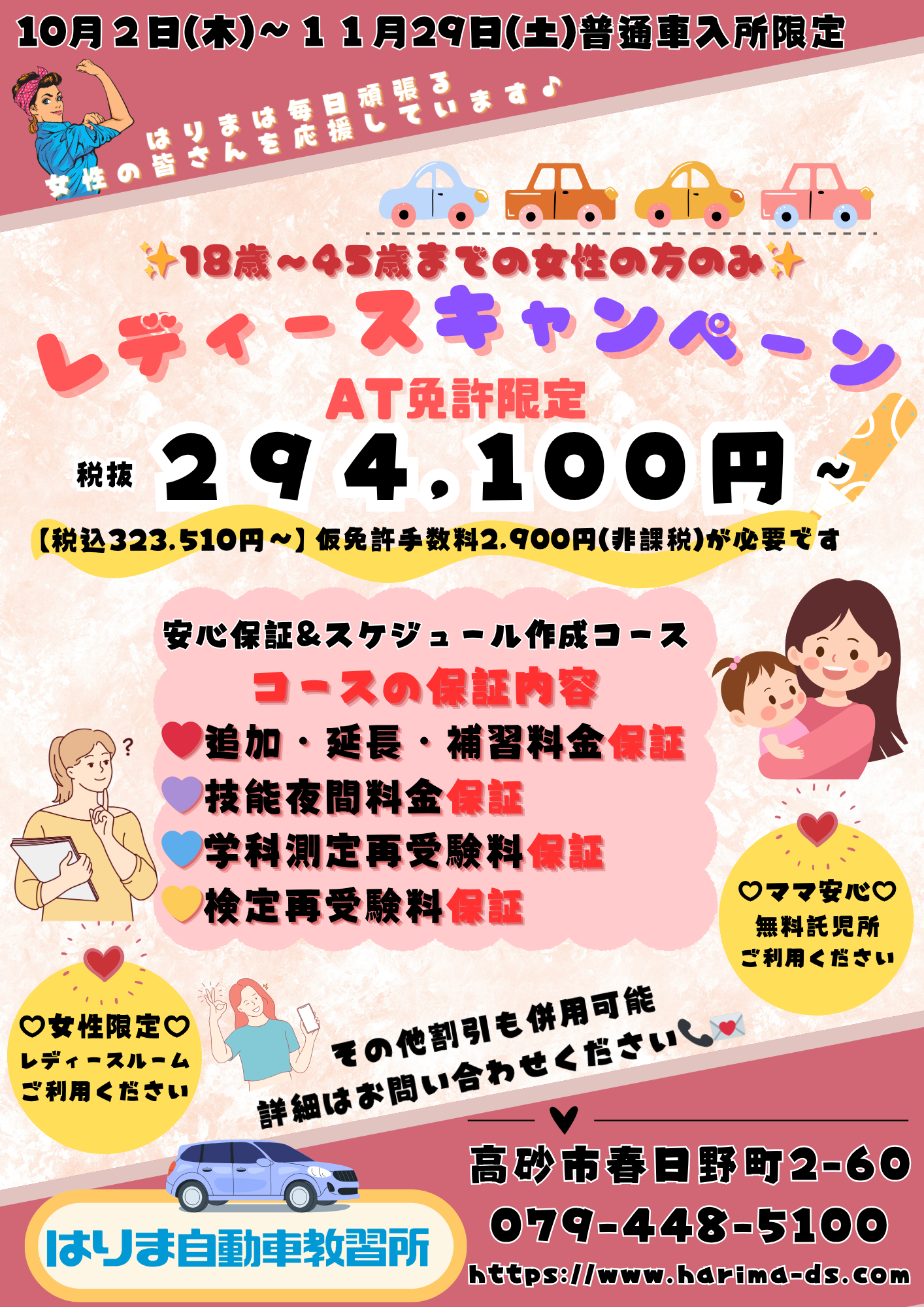 - キャンペーン 25.10.02 レディースキャンペーン♪10月・11月の入所で特別割引実施‼