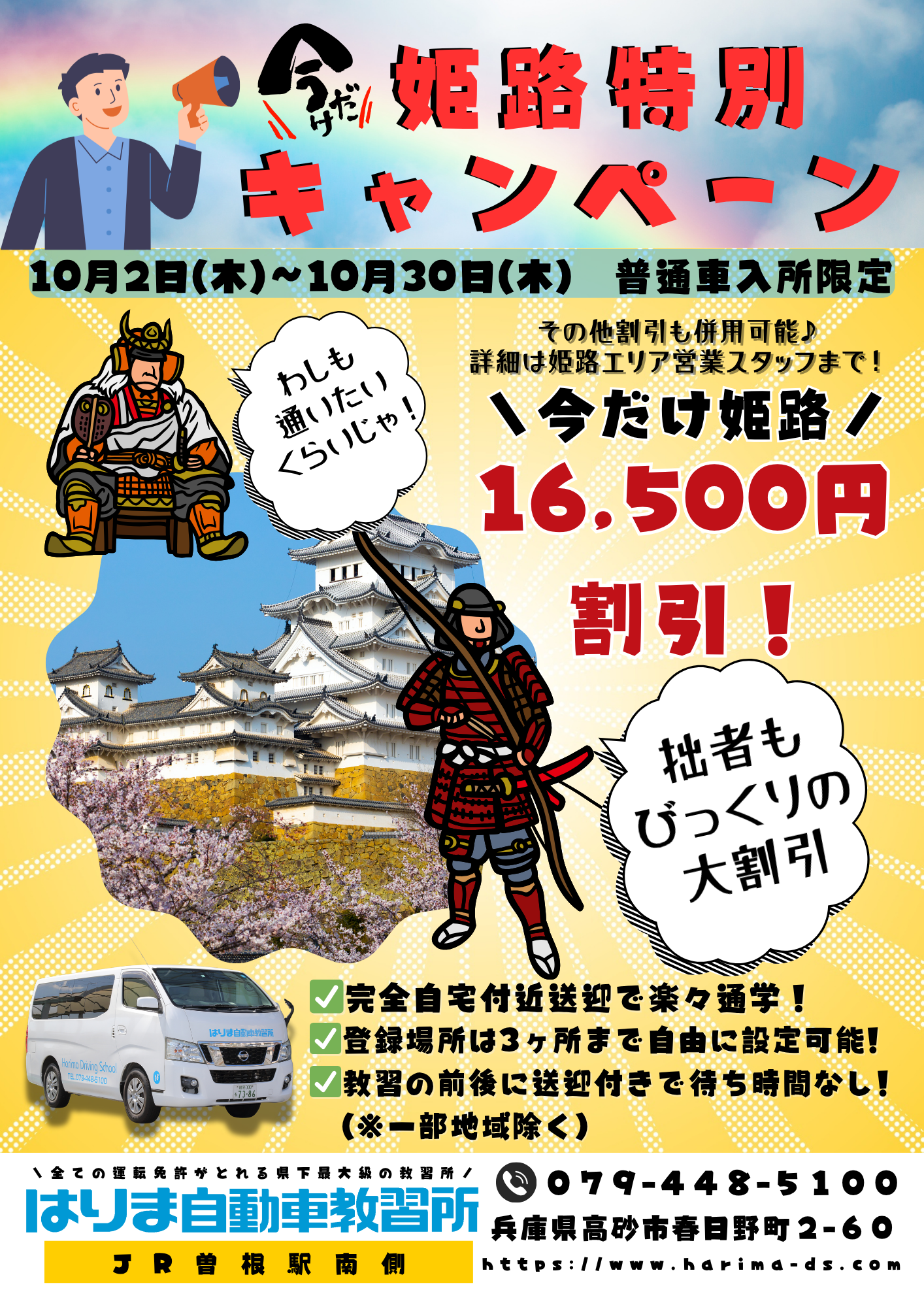 - キャンペーン 25.10.02 姫路特別キャンペーン 10月中の入所で16,500円引‼