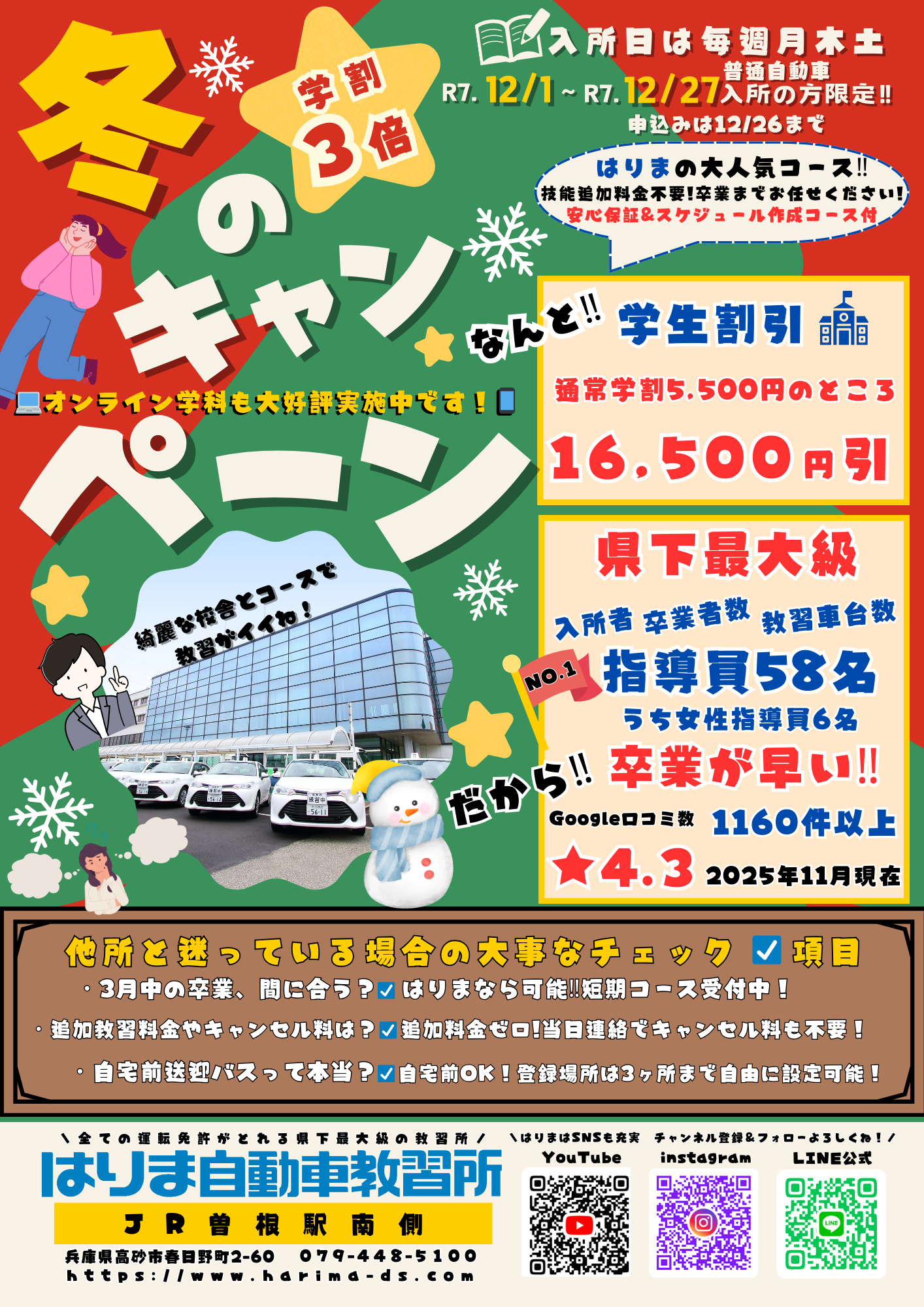 12月中入所で 学割3倍!16,500円引き!