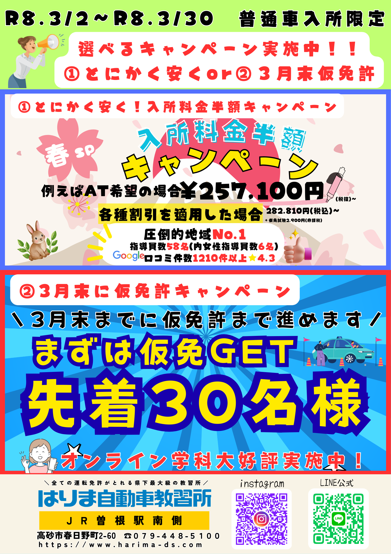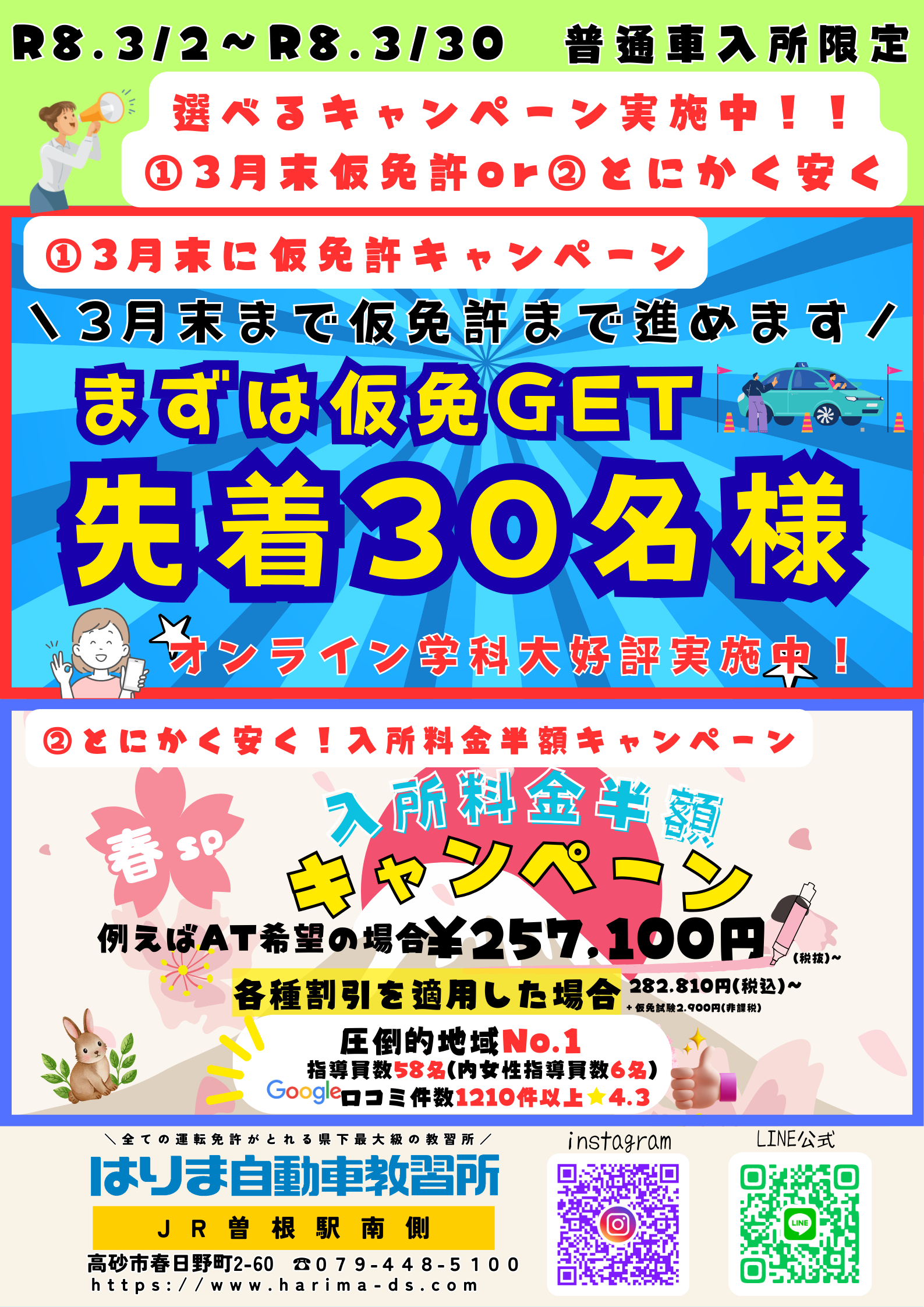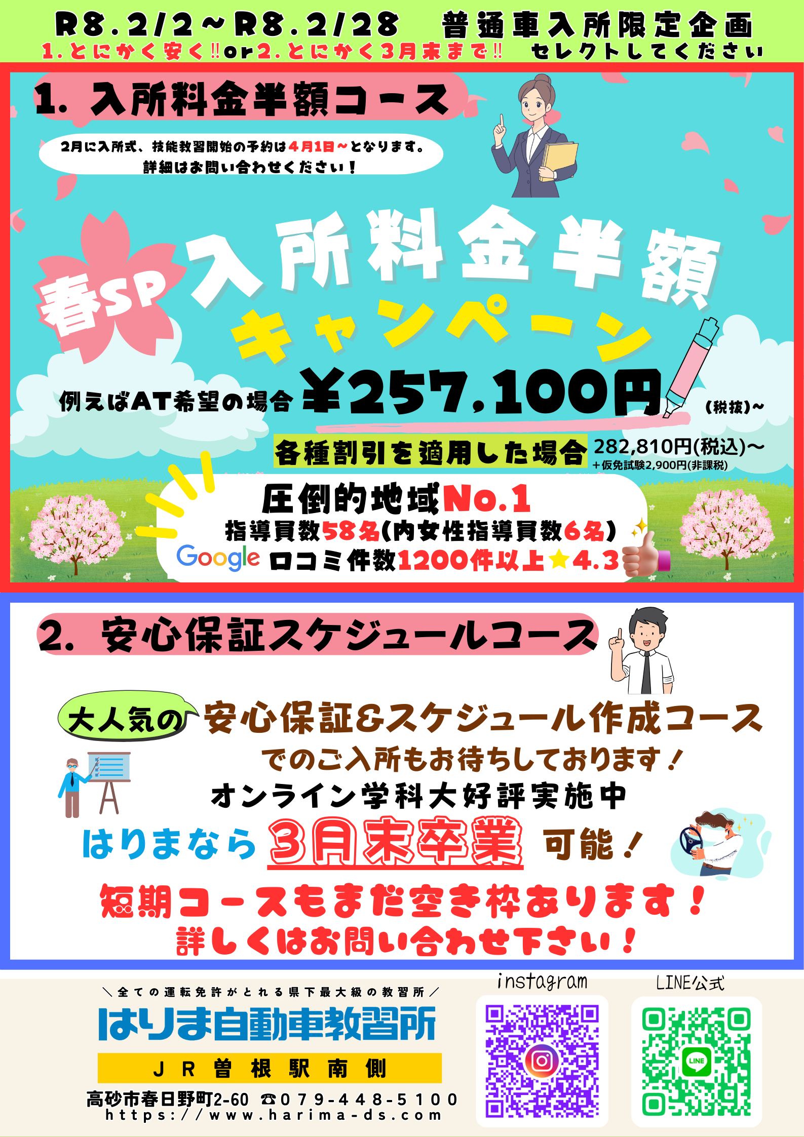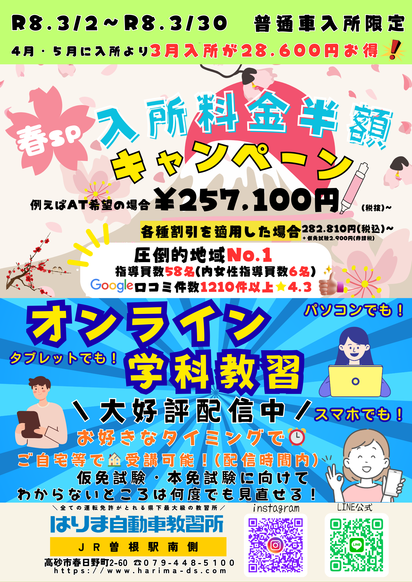 - お知らせ 25.03.01 ~教習料金改定のお知らせ~ 令和7年4月1日お申込み分より適用になります。