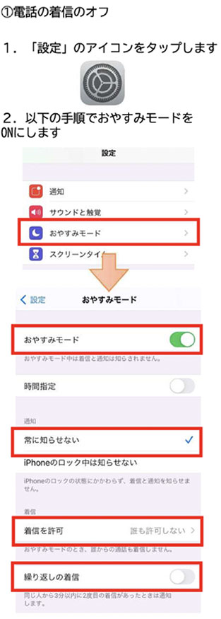 - オンライン学科受講時は着信設定を行うこと。(設定方法参照)