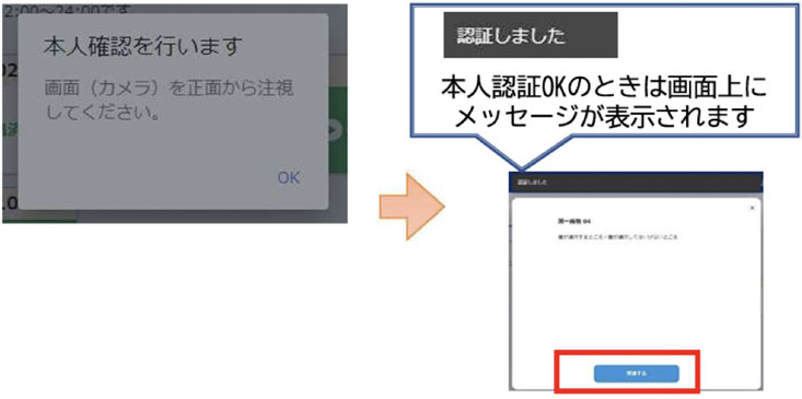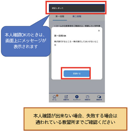 [OK] を押さずとも、 自動的に認証が始まります。 確認が出来ない場合は、教習所にご確認ください。