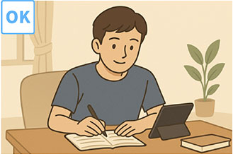 - ノートや教本にメモを取る場合は、できるかぎり顔はカメラ正面を向けること。