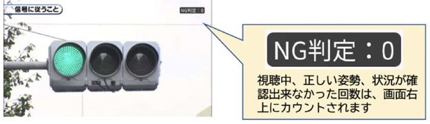 - 以下のNG判定が一定数カウントされると不成立とみなし、 教習は強制終了となります。