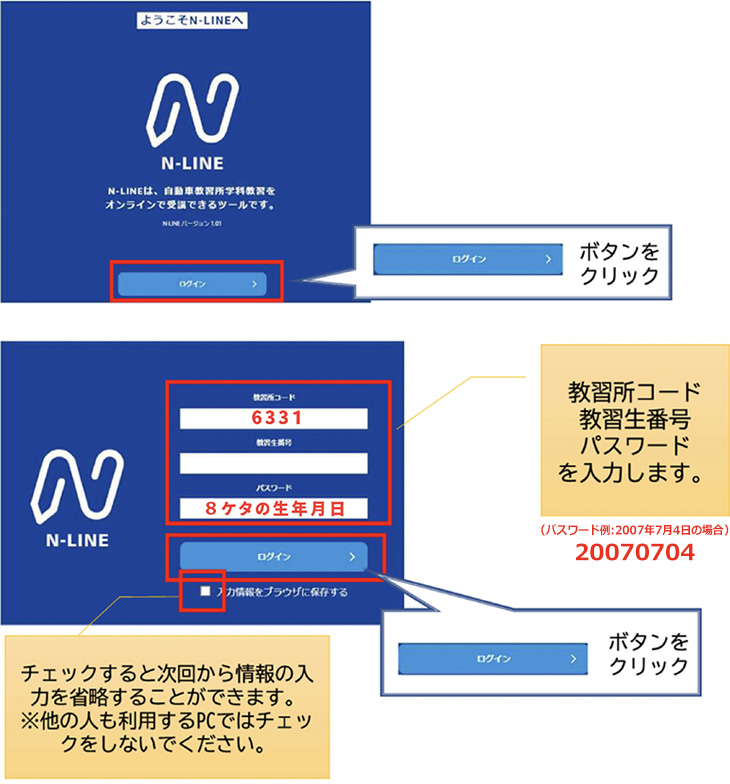 オンライン学科教習ツール 「N-LINE」 アプリを、App Store または Google Play からインストールします。